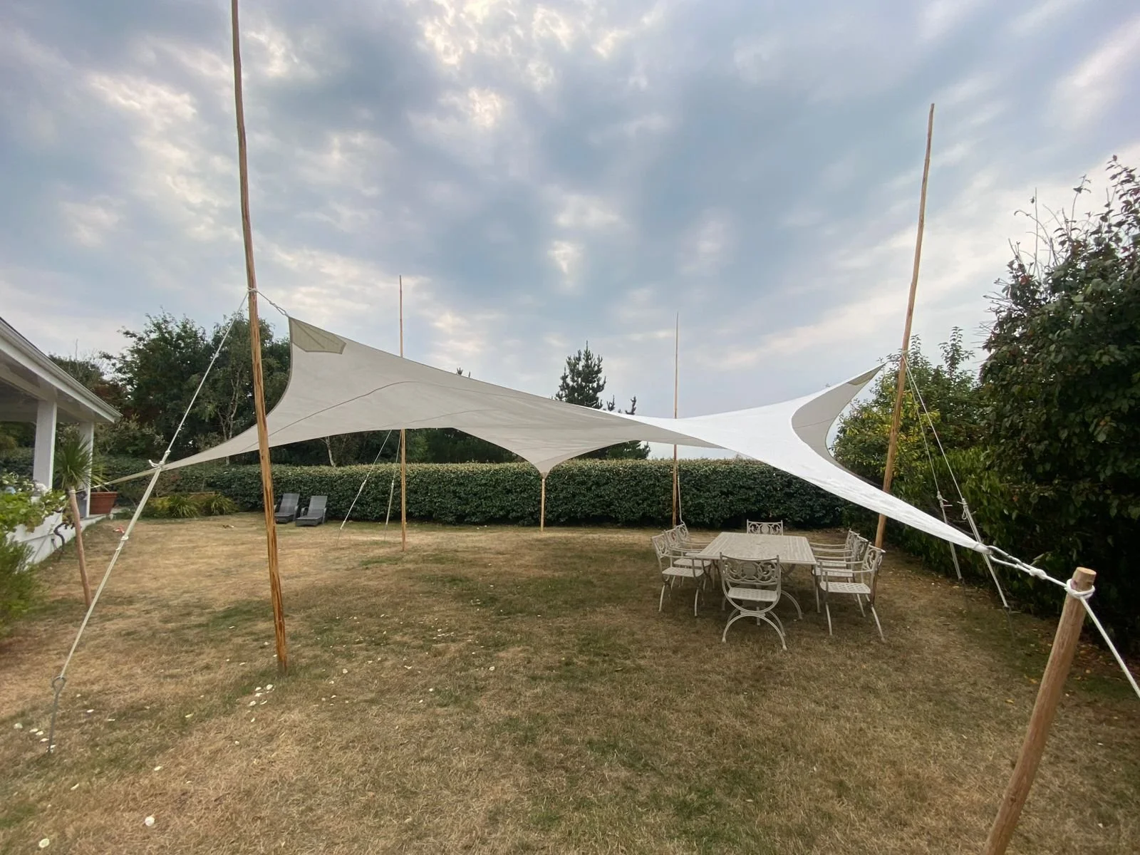 Our sun sails bring the open plan of any space to life. The structure allows you to make use of all the available ground area, keeping it open but shaded, letting in the breeze and light, whilst providing protection from the heat of the sun or the downpour of rain. A unique set up for any private party or event. When you rent a sun sail from us, we will come the day before your event to set it up and then return the day after to take it down.